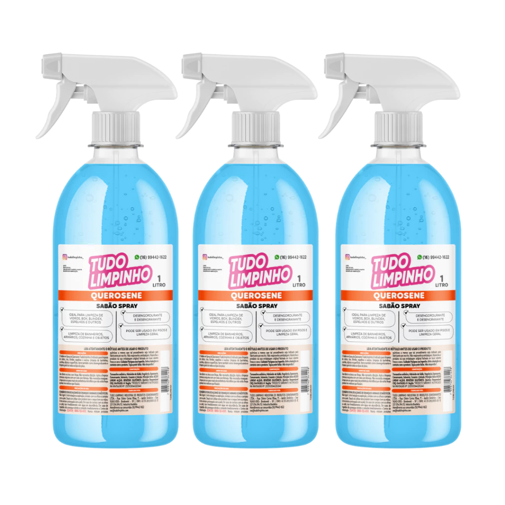 Spray de Querosene é a solução definitiva para quem busca praticidade e eficiência na limpeza do dia a dia. Desenvolvido para proporcionar um acabamento impecável em vidros e espelhos, ele também é extremamente versátil, atuando com perfeição em móveis, armários, superfícies em geral, pisos e outros.