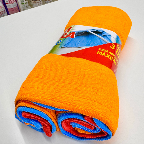 1 Kit de pano microfibra com 3 unidades, medindo 48x58cm, sendo as cores sortidas de acordo com a disponibilidade no estoque!