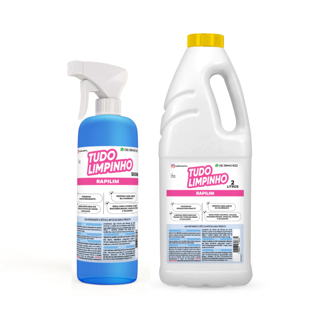 Indicações: O Rapilim Tudo Limpinho é um poderoso desengordurante capaz de remover a sujidade e gorduras mais profundas.