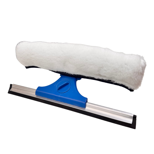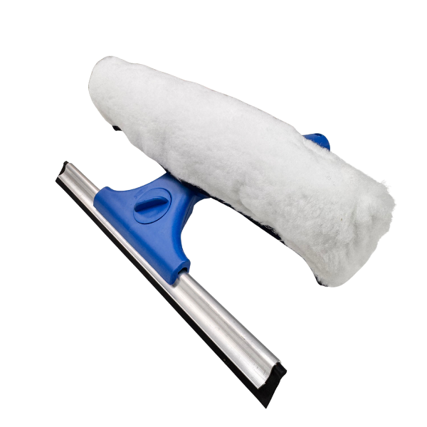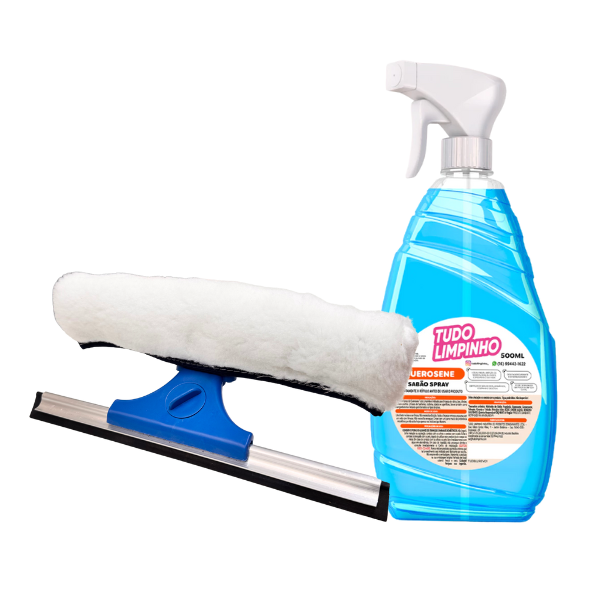 – O rodo combinado 25cm de um lado faz a limpeza, esfrega e remove a sujidade toda do vidro, espelhos, box e outros. E do outro o rodo que puxa e vem dando o acabamento final.