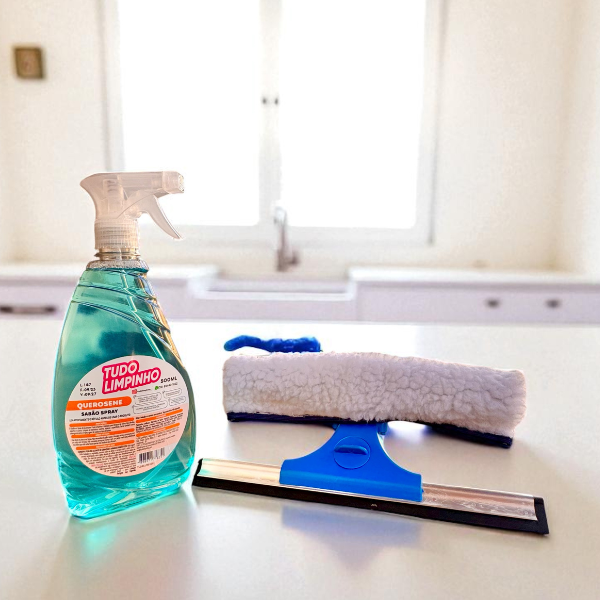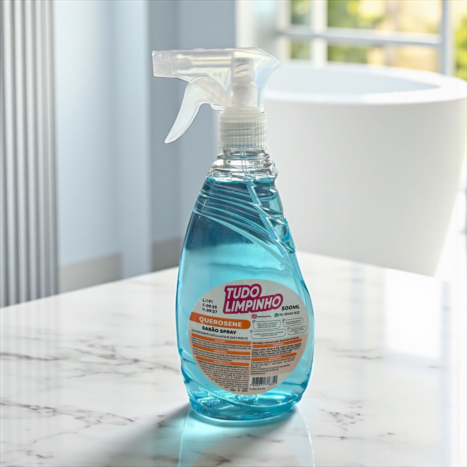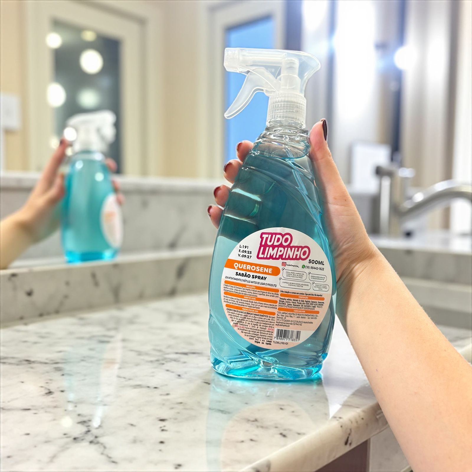 – Spray de Querosene é a solução definitiva para quem busca praticidade e eficiência na limpeza do dia a dia. Desenvolvido para proporcionar um acabamento impecável em vidros e espelhos, ele também é extremamente versátil, atuando com perfeição em móveis, armários, superfícies em geral, pisos e outros.